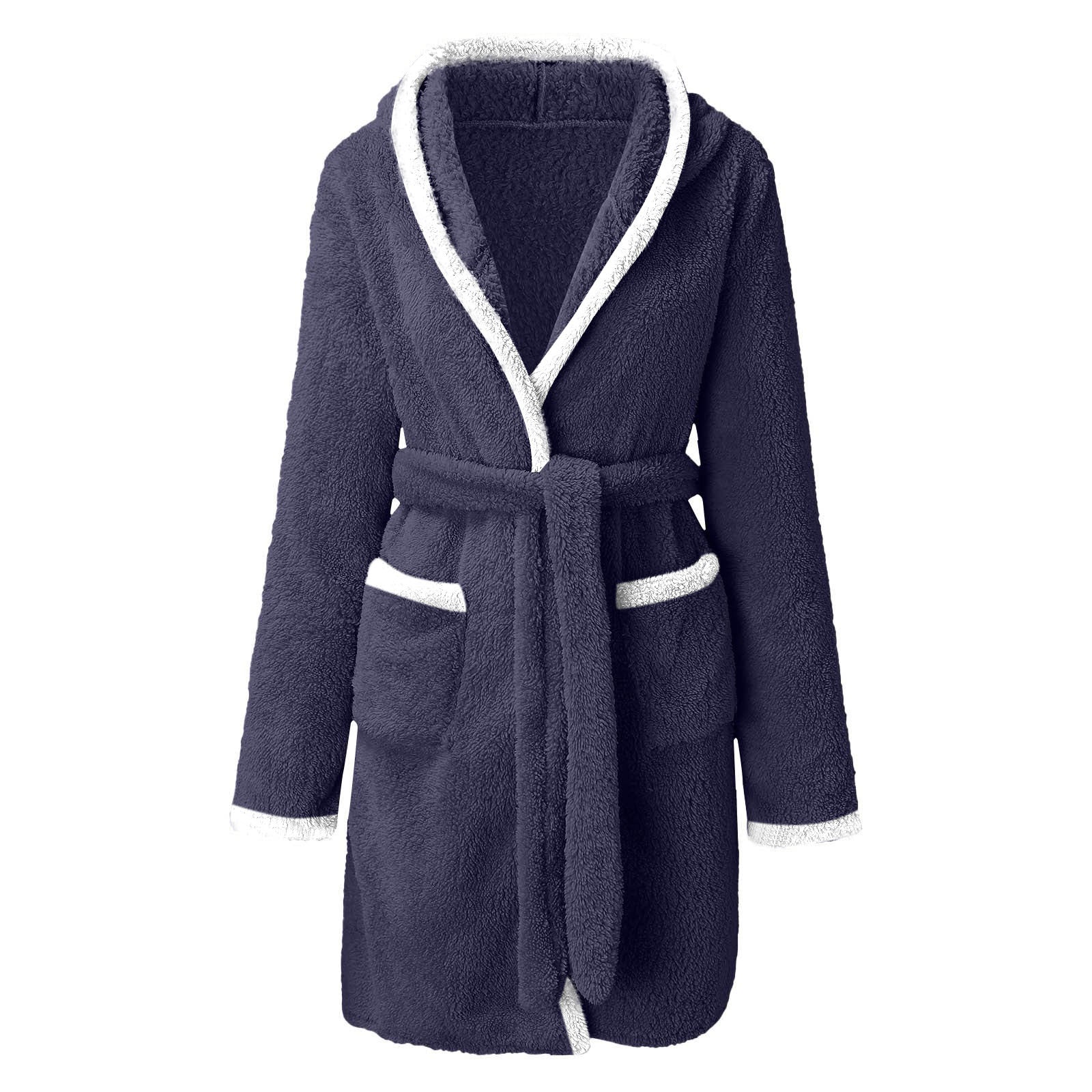 Autumn And Winter Color Matching Hooded Pajamas Plush Warm Bathrobe