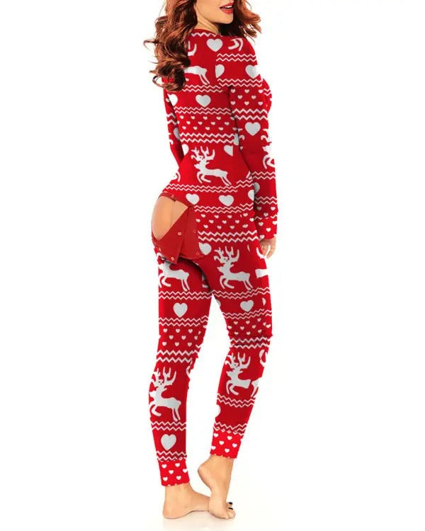 Christmas Cutout Functional Buttoned Flap Adults Pajamas