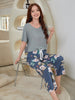 Cotton Silk Casual Pajamas Set Home Wear - Gray Top + Tulip Print Trousers