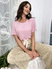 Cotton Silk Casual Pajamas Set Home Wear - Pink Top + Yellow Plaid Floral Print Trousers