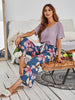 Cotton Silk Casual Pajamas Set Home Wear - Purple Top + Red Leaf Printed Trousers