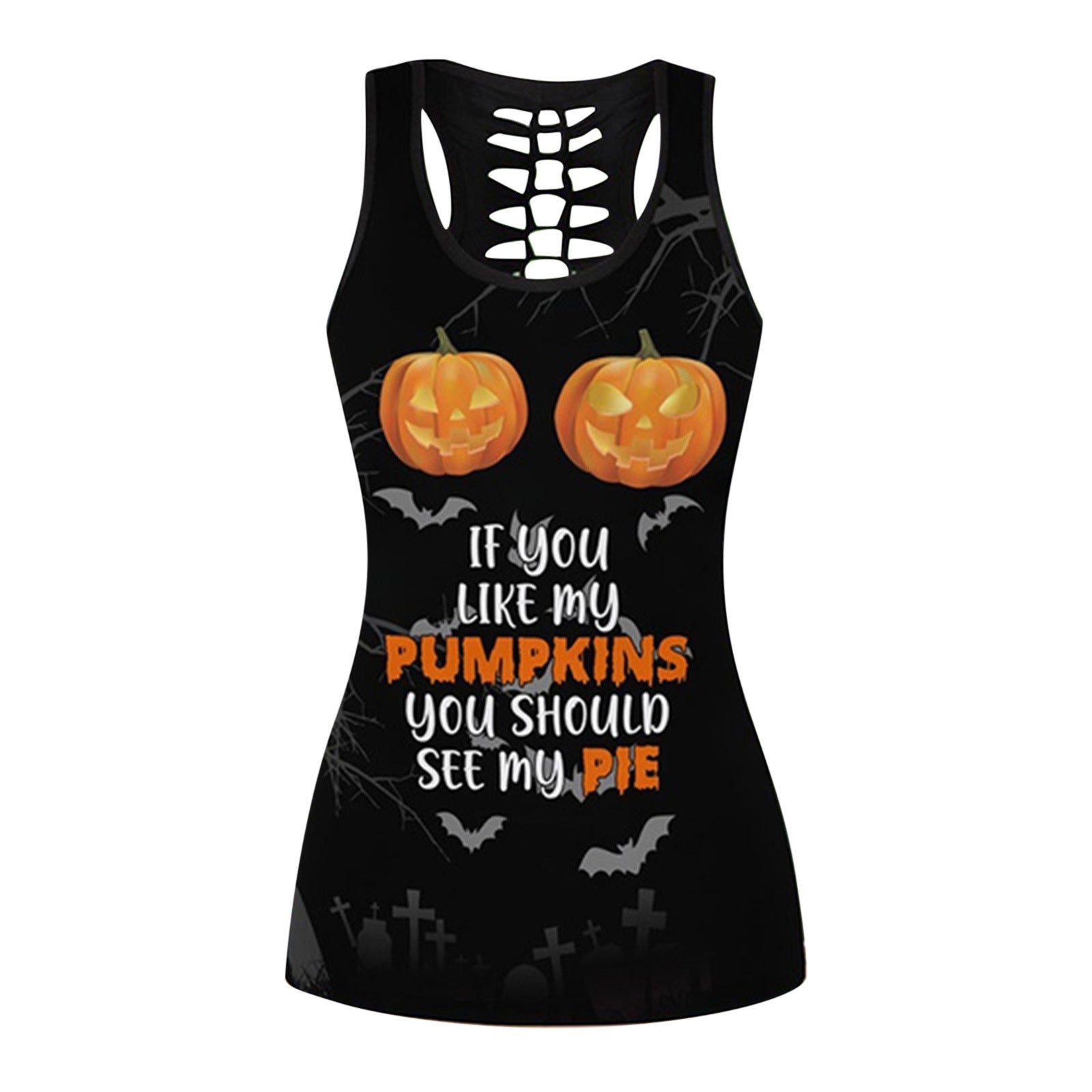 Halloween Black Bat Trousers Sleeveless Top Digital Printing Casual Suit Home Clothes