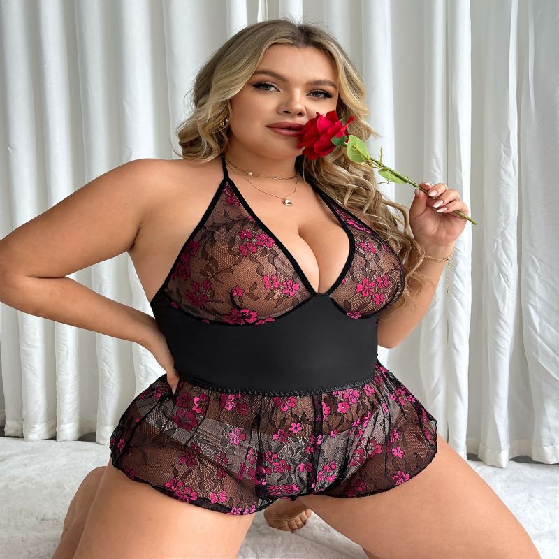 The plaid lingerie dress features a sheer lace panel, and scalloped detail for a sexy look.