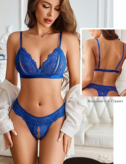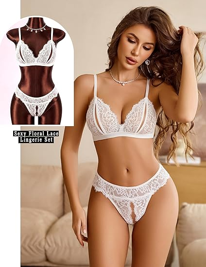 Floral eyelash lace, open cups, convenient crotch, adjustable straps, exquisite and charming