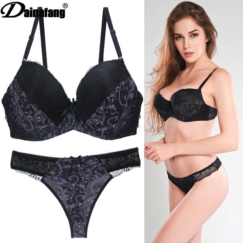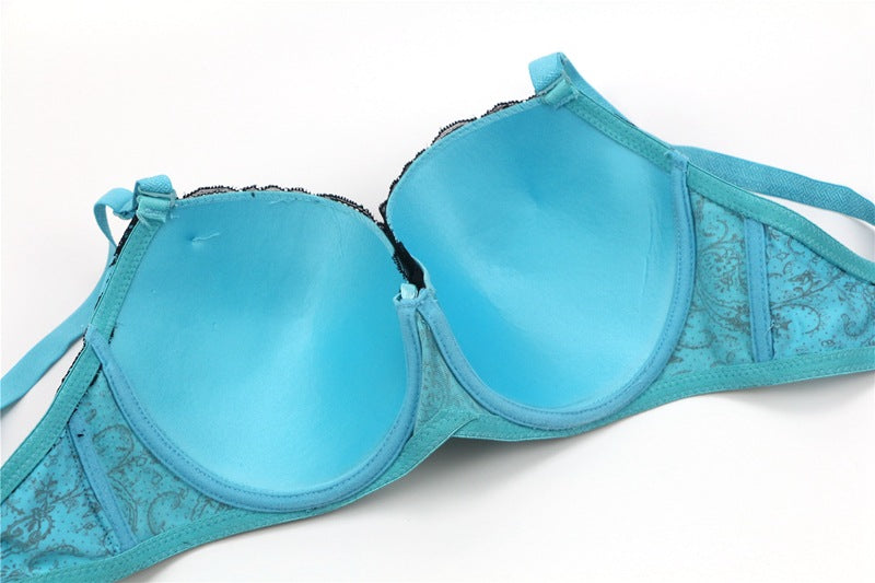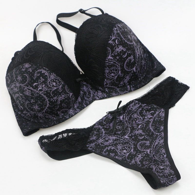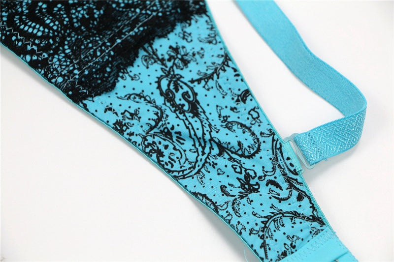 Sexy Lace Print Color-Blocked Lingerie Bra Set