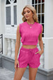 Solid Color Round Neck Sleeveless Wavy Casual Fashion Suit