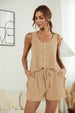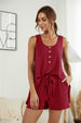 Solid Color Sleeveless Buttoned Lace-Up Comfortable Two Piece Set