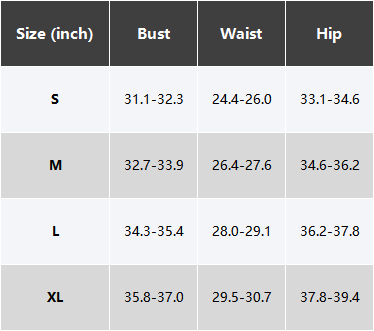 Size chart: please allow 0.4"-0.8" differs due to manual measurement.