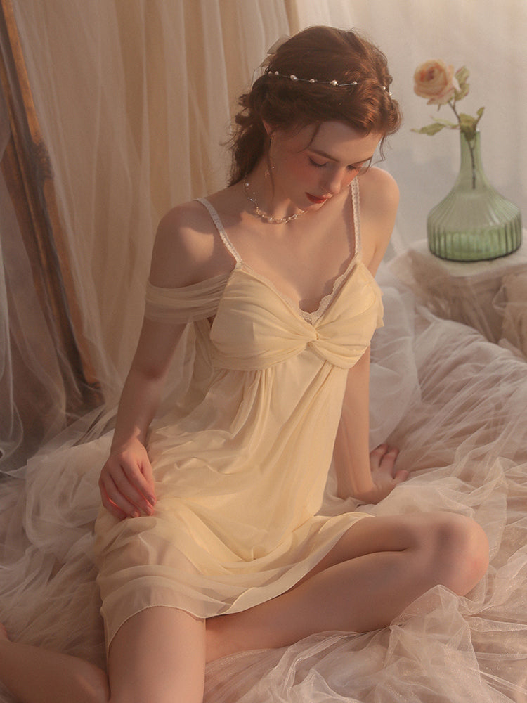 V-Neck Short Sleeves Sweet Sexy Lace One-Piece Nightgown
